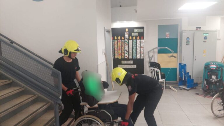 הצפה בבית ספר: לוחמי האש פינו תלמידים בכיסאות גלגלים