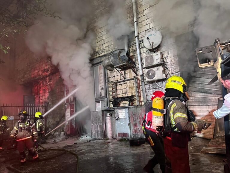 צפון העיר: לוחם אש נפצע מפיצוץ במהלך כיבוי שריפה במוסך באזור התעשייה עטרות