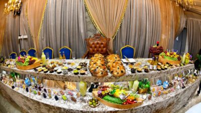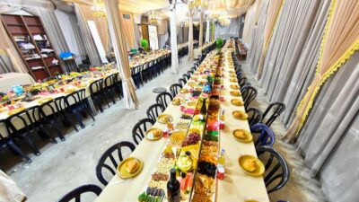 כמנהגו בקודש, ערך ראש הישיבה שליט"א שולחן עשיר ומיוחד בשפע עצום של פירות מובחרים ויקרים, מכל סוגי פירות האילן והאדמה, בשפע אשר לא שבעתן עין. מאות המשתתפים שמחו בשמחה גדולה, ובשל ריבוי הטוב לא עלה בידם לסיים את כל המוגש. על פי הוראת הרב שליט"א, חולק השפע וכל אחד מן המשתתפים נטל לביתו מכל טוב.