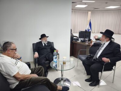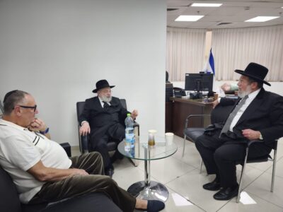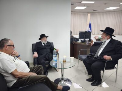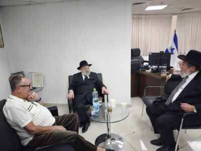 הרה"ר לישראל קלמן מאיר בר אירח השבוע בלשכתו את הרב יהורם אולמן, אב"ד סידני ודוד מאיר מאנשי הקהילה היהודית בעיר.