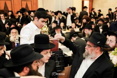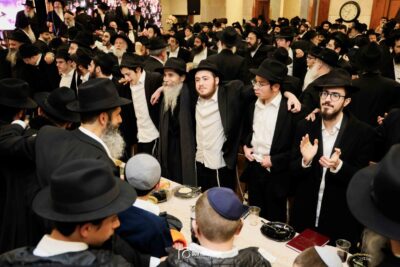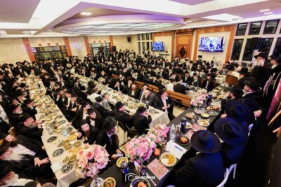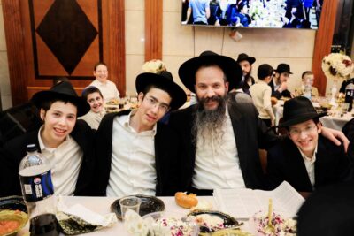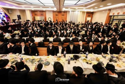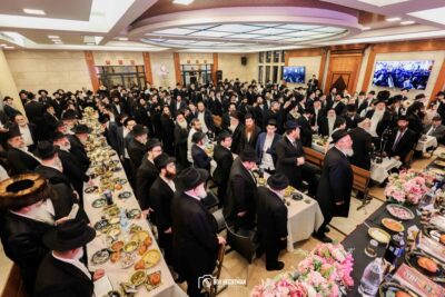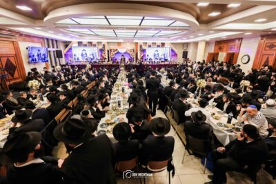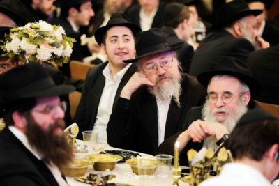סעודת מלווה מלכה חגיגית נערכה סביב שולחנות ערוכים בטוב טעם, והאווירה הייתה מרוממת, שמחה ומלאת קדושה.