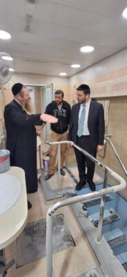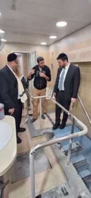 בסיור שקיים היום עם הרב יהודה לייב מינצברג, שאחראי על נושא הכשרות במקוואות, הדגיש היו"ר: המחויבות שלנו היא קודם כל לכשרות לכתחילה בסטנדרט הגבוה ביותר.