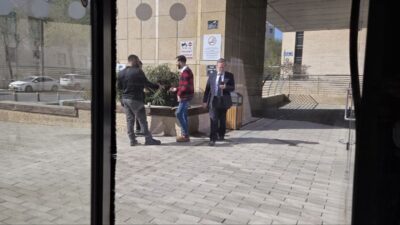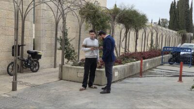 סדר יום עמוס: דובי ויסנשטרן מנכ"ל זק"א בבניין משרדים ירושלמי בדרך לפגישות