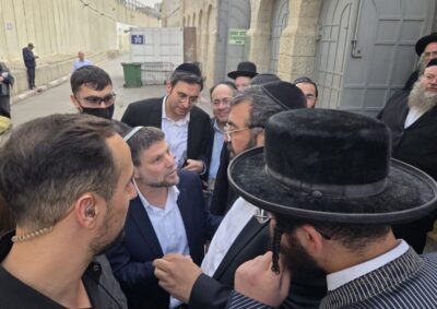 באתי להתפלל ולהצטלם לפניך: מנכ"ל אתר קבר רחל אייל עטיה עם השר סמוטריץ במתחם הקבר בבית לחם, לאחר ישיבת סייעה מפלגתית במקום.
