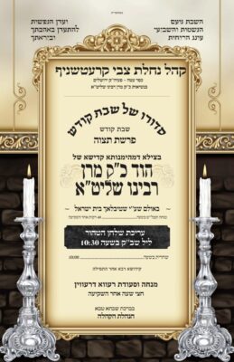 האדמו"ר מקרעטשניף כפר עטה שחזר ארצה לאחר מסע לחו"ל יערוך את טיש ליל שבת באולמי בית ישראל