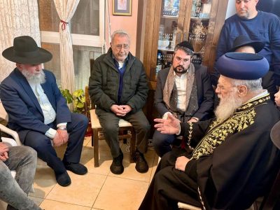 הראשל"צ הגר"י יוסף בניחום אבלים בבית מקורבו הרב מרדכי גזית יו"ר ארגון "לתת אור – יד לאסיר" היושב שבעה על פטירת אחיו החזן והפייטן ר' יעקב גזית ז"ל