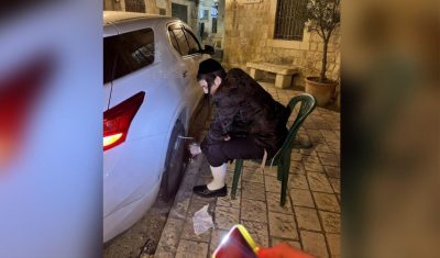 כאחד האדם: סמוך לאחת מסמטאות העיר נראה הזמר מוטי שטיינמץ מתקן פנצ'ר