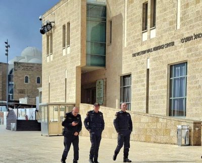 על הר ציון ששמם: מפקד מחוז ירושלים אבשי פלד וסגנו רונן עובדיה בכותל הריק בחול המועד