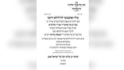 שמחת בית סלונים: הקידושא רבא לרגל שמחת הולדת ה3 נינות לאדמו"ר מסלונים, נכדה לבנו הרב ברוך ברזובסקי, בת לבנו הרב נפתלי חיים ברזובסקי, נכדה לבנו הרה"צ רבי משה ברזובסקי, בת לבנו הרב ברוך ברזובסקי, נכדה לחתנו הרב חיים אויערבאך, בת לחתנו הרב סנדר הרשטיין, תתקיים בביהמ"ד הגדול סלונים ברחוב שמואל סלנט במאה שערים.