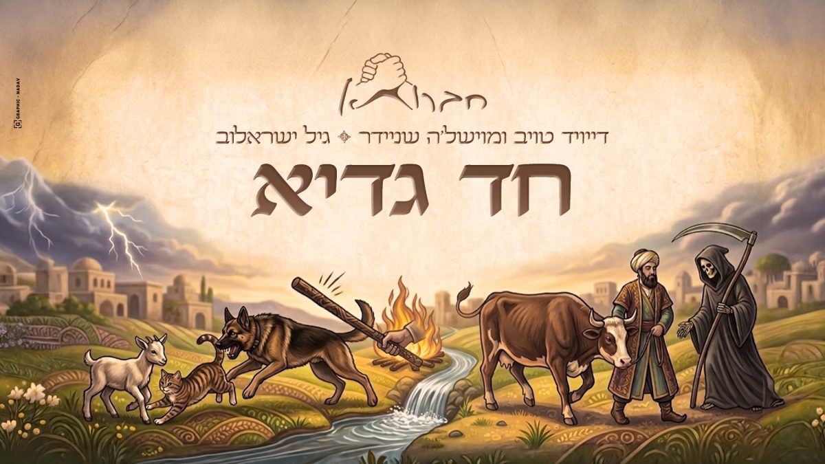 והנה, ה'חזקה' הופכת הפעם למסורת. הגדי המתוק, החתול, הכלב והמקל, האש והמים, השור והשוחט, קמים לתחייה ומקבלים בשיר הנפלא צורה וביטוי מוחשי.