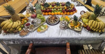 עריכת השולחן בליל ט"ו בשבט במעונו של מרן הגאון הגדול רבי אליהו טופיק שליט"א ראש ישיבות 'באר יהודה'