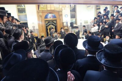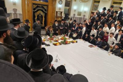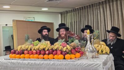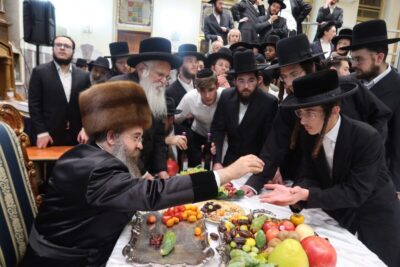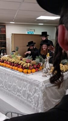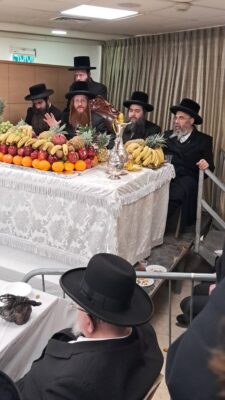 טיש חמשה עשר בשבט אצל כ"ק אדמו"ר מקרעטשניף סיגעט שליט"א: