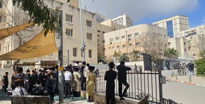 הבוקר (יום ג' – של חול המועד), מתקיימת הפגנה של קבוצת קיצוניים בכניסה ללשכת הגיוס ברחוב רש"י בשכונת מקור ברוך. המפגינים יצאו למחות, לטענתם, בעקבות קיומו של יום גיוס לחרדים.