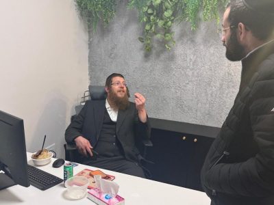 כיכר השבת פינת כאן: כתב התאגיד מיכאל שמש מתפלל במשרדי האתר החרדי בכנפי נשרים
