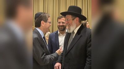 מנחם ברקוביץ רמט הרב הראשי הרב קלמן בר עם הנשיא הרצוג