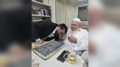 חבר המינהל הקהילתי בפסגת זאב הרב דוד אמיניאן מתברך בכניעה רבה מהרב יצחק ראובני