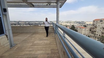 מבכירי המערכת בערוץ 14 אריה שטיין, באחד ממגדלי המשרדים בעיר