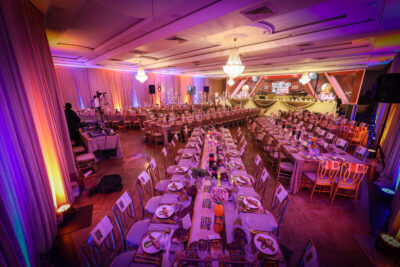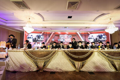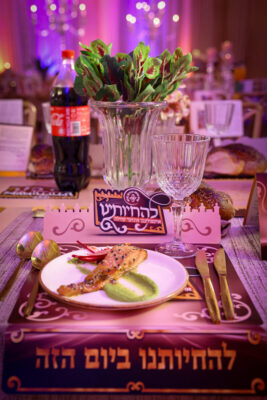 את פני הבאים קידמה מודעת ענק ברוכים הבאים, האולם כולו הוכן בפאר והדר כיאה למעמד, הנציגים אשר עמדו בפתח הנחו את כל אחד למקום ישבתו כיאה לכבודו, יחד הסבו כל בני הקהילה לסעודה מפוארת כיד המלך.