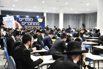 כבר משעות הצהרים המוקדמות החלו אלפי האברכים ובני הישיבות לזרום לעבר האולם המיוחד במתחם שבו נערך מבחן מקיף. במשך שעה ארוכה ישבו האלפים בריכוז באולם הענק וענו על השאלות על חוק לימודם במשך שלוש שנים, כשהמשגיחים והמשיבים עומדים הכן להשיב על שאלות בהבנת המבחן ולסייע.