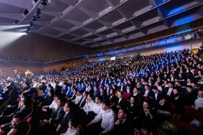 התרוממות הרוח הורגשה באולם בשעה שנכנסו אליו מרנן ורבנן גדולי ישראל שליט"א. במשך דקות ארוכות עמד ציבור האלפים על רגליו לתת כבוד לתורה, מתוך שירה ושמחה של תורה ורגשי קודש כשאת בימת הנשיאות מפארים גדולי ומאורי התורה והחסידות.