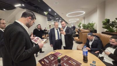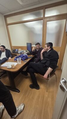 אין לך בן חורין אלא מי שעוסק בתורה: איצו פלדמן מנחם קולדצקי ומוישי רבר בחדר סיעת יהדות התורה