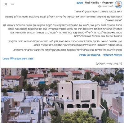 בנוסף, התוכנית מתנהלת בוועדות התכנון כבר למעלה מ-5 שנים, והיא הוגשה לאחר דיונים והסכמות עם ראש העיר משה ליאון ועם המינהל הקהילתי.