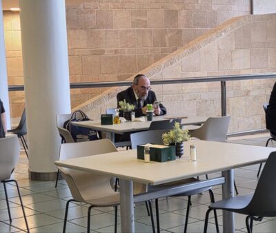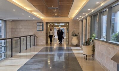 ורק יעקב ריבלין יושב בשלווה ונחת במסדרון המוביל אל קומת הוועדות