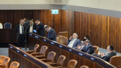 רגע אחרי נאום צעקני ח"כ גפני עם פינדרוס ועוזרו יעקב מורגנבסר כשלצידם חכי ש"ס רגועים מתמיד ללא חשש גיוס באופק