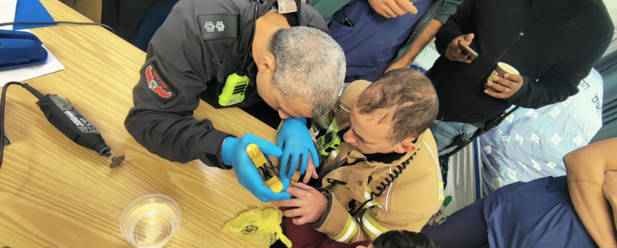 מפקד האירוע, להב שלום רמתי: "הוזנקנו לסייע לצוות הרפואי בבית החולים במקרה רגיש של ילד שסבל מכאבים עזים עקב טבעת שלחצה על אצבעו. מדובר בפעולה הדורשת ריכוז גבוה, יד יציבה ודיוק מרבי כדי לבצע את החיתוך בבטחה מבלי לפגוע בילד. פעלנו בסבלנות עד להסרת הטבעת בהצלחה ושחרור הלחץ מהאצבע."