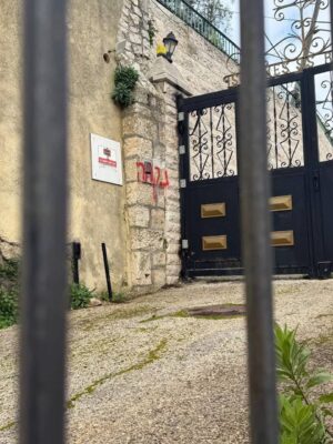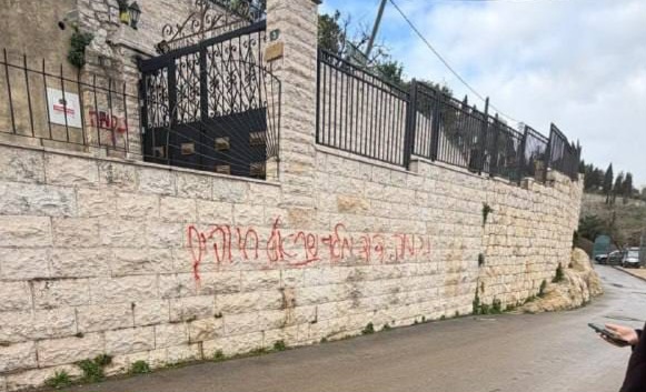 דרמה הבוקר בשכונת עין כרם: כתובות רוססו על קיר חיצוני ועל רכב בסמוך למתחם כנסיית הביקור, במה שנבדק כחשד לאירוע חמור על רקע לאומני.