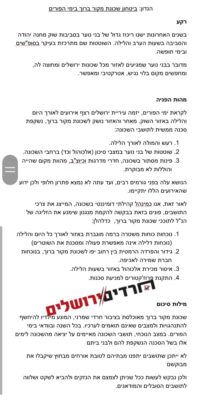 התושבים מסיימים את מכתבם בקריאה לעירייה: שכונת מקור ברוך מאוכלסת בציבור חרדי שמרני, המונע מילדיו להיחשף להתנהגויות ולמצבים שאינם תואמים לערכיו. בכל השנה ובוודאי בימי הפורים. במצב הנוכחי, תושבי השכונה מאיימים על יציאה מהשכונה לימים אלו בשל הסכנה הנשקפת להם ולבני ביתם, לא ייתכן שתושבים יתפנו מבתיהם, לטובת אורחים מבחוץ שיקבלו את מבוקשם, ולכן נבקש לעשות ככל שניתן לצמצם את הנזקים ולהביא לשקט ושלווה לתושבים הסובלים והמודאגים.