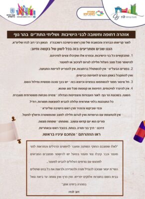 פרסום חריג בשכונת הר נוף: המינהל הקהילתי בשכונה, בשיתוף החברה למתנ"סים, פרסם ביממה האחרונה אזהרה דחופה לבני הישיבות ושליחי הת"תים, על רקע חשש גובר ממעצרים, במיוחד בקרב מי שמצבם החוקי מורכב.