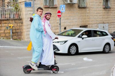 בין שלל התחפושות שנצפו השנה בלטה במיוחד תחפושת ססגונית של ראש הממשלה הולך ברחובות גאולה -מלכי ישראל כשהוא מוקף “מאבטחים”, מחזה שמשך תשומת לב וחיוכים רבים.