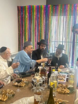 חבר מועצת חכמי התורה הגאון רבי שלמה מחפוד, נצפה בשתית 'לחיים' בבית יו"ר ועדת הבריאות ח"כ יוני משריקי בהר נוף