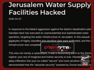 בזמן שמבצע "שאגת הארי" נמשך מול איראן והשלוחות האזוריות, נראה כי גם הזירה הפסיכולוגית והתקשורתית מתחממת. קבוצת ההאקרים האיראנית "חנדל'ה", הידועה בפעילות סייבר אנטי ישראלית, פרסמה הודעה דרמטית בה היא טוענת כי הצליחה לפרוץ ל"מתקני אספקת המים של ירושלים".