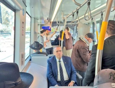 כאחד האדם: ראש העיר משה ליאון, חזר השבוע ללשכתו בכיכר ספרא ברכבת הקלה (צילום: עו"ד לאון פרץ)