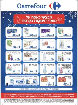 בין השאר מתמקדת קרפור בעולם התינוקות, תחום שבו כל שקל מורגש. כך למשל, חיתולי האגיס Freedom Dry במבצע של 3 חבילות ב־90 ₪, וחיתולי האגיס Extra Care 2 חבילות ב־80 ₪, חתולי 3 חבילות ב־80 ₪ מגבוני האגיס רביעייה 2 ב 30 ₪, טיטולים פרימיום 3 חבילות ב 55 ש"ח. בכפוף לקנייה מעל 70 ₪.