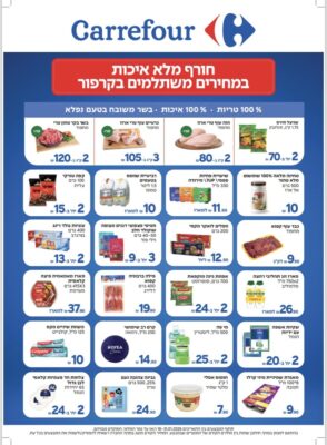 קרפור לא פוסחת על סל הקניות המשפחתי הכללי, ושמה דגש על בשר, עופות, מוצרי יסוד ומותגים מובילים. חזה עוף טרי ארוז של מחפוד נמכר 2 ק"ג ב־80 ₪, כרעיים עוף 3 ק"ג ב־105 ₪ ובשר בקר טחון טרי מחפוד 2 ק"ג ב־120 ₪ – מחירים שמציבים רף נמוך במיוחד לחלבון איכותי.