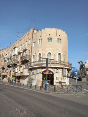 מבנה פינתי משנות ה-20 המעוצב בחצי-עיגול ומהווה נקודת ציון: