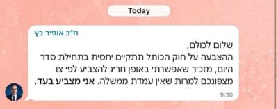 ההודעה של יו"ר הקואליציה הבוקר:
